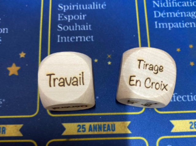 Grâce à ces dés en bois gravés, il suffit de les lancer pour recevoir une orientation claire et spontanée :